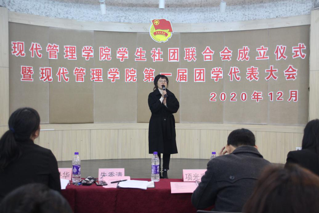 2020年12月14日晚上,现代管理学院学生社团联合会成立仪式暨现代管理学院第一届团学代表大会在学院多功能厅顺利召开。出席会议的有现代管理学院党总支书记项光春,副书记朱秀清、组织员朱观娟、团总支书记贾飞祥、辅导员黄丹华、陈君、季焕磊、谢戴海,现代管理学院学生会团学代表成员、各班班委及学生会团学代表共100余人出席本次大会。