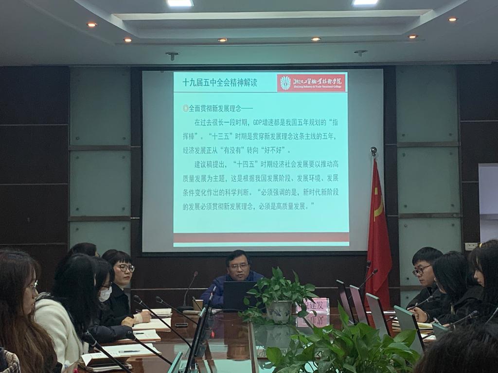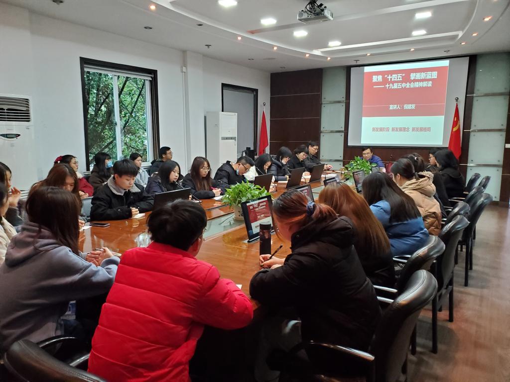 为了进一步学习宣传贯彻党的十九届五中全会精神,2020年12月13日下午,学院党委副书记倪建发老师亲临现代管理学院为师生做以“聚焦‘十四五’,擘画新征程”为主题的十九届五中全会精神宣讲。宣讲会由现代管理学院党总支书记项光春主持,