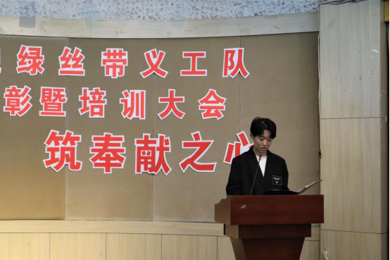 而后进行优秀志愿者集和个人分表彰颁奖、穿戴绿丝带义工队马甲、佩戴绿丝带、颁发志愿者证,并举行隆重的宣誓仪式。
