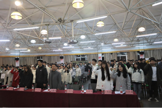 活动开始前,到场的同学们有序地在印着“奉献、友爱、互助、进步”志愿者横幅上签名。大会伊始,全体起立齐唱青年志愿者之歌,伴随着激昂、舒缓的音乐,大会正式拉开了帷幕。