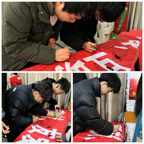 (活动开始前,志愿者们在奉献、友爱、互助、进步”横幅上签字)