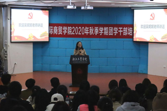 为了进一步加强我院团学干部队伍建设,提升学生干部的业务能力和管理水平,12月12-13日,国际商贸学院团总支组织开展了2020秋季学期团学干部培训,参加对象为分院团学干部和2020级班团干部,共280余人参与此次培训。本次培训会以集中授课、讨论交流、实践锻炼的形式展开。此次培训特别邀请浙江省总辅导员葛红敏老师和国际商贸学院党总支书记王耀贵老师担任主讲。