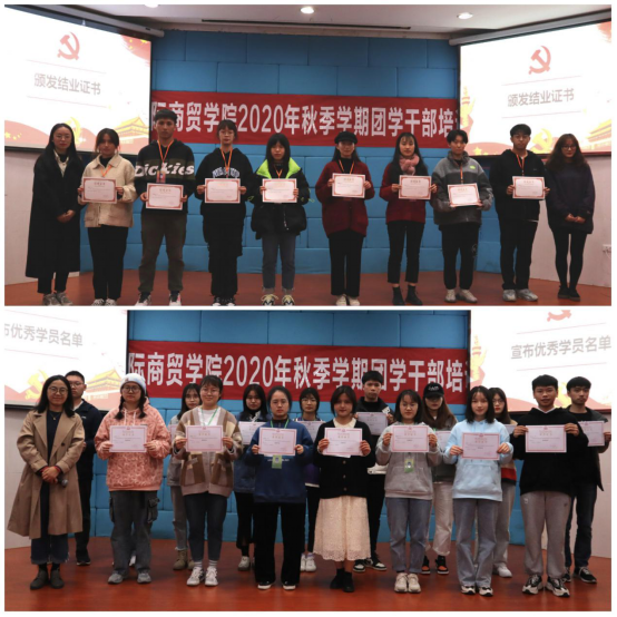 最后,吴妮妮老师对学院优秀学员进行了颁奖并邀请了三位优秀学员进行了心得分享。三位同学就本次活动做了精彩的发言,讲述了自己在此次培训中的收获,表明了自己对今后日常工作、学习的初步打算。此外学生会主席叶眉以及团总支副书记张天雨为学员颁发了结业证书。