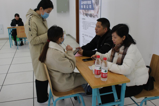 12月19日在人工智能学院教学楼组织2021届毕业生就业专场招聘会,本次招聘会隆重邀请二十家企业参加,提供百余个就业岗位。人工智能学院党总支副书记徐登喜、副院长赵秀芝、电子信息工程技术专业主任徐群和、实训中心主任关雷、实训中心指导老师王孝尚、辅导员陈力特、蔡万盛等参加招聘会,与企业来宾沟通洽谈。人工智能学院计算机应用技术、电子信息工程技术、软件技术专业近400名毕业生参加招聘会。学生积极与用人单位交流,主动了解各用人单位的情况,现场效果良好。