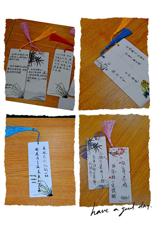联谊活动内容分为三个环节:“文史闯关”、“你比划我猜”、“书签寄语”。“文史闯关”环节采用抢答模式进行,题目涉及中外文学、历史、地理等多方面知识,大家反应机敏、答题迅速,充分体现了同学们深厚的知识积累。在“你比划我猜”游戏环节,同学们两人一组配合默契,准确传递文字信息。最后的“书签寄语”环节,同学们纷纷写下心中最美句子,并将书签放入书架上的图书中。