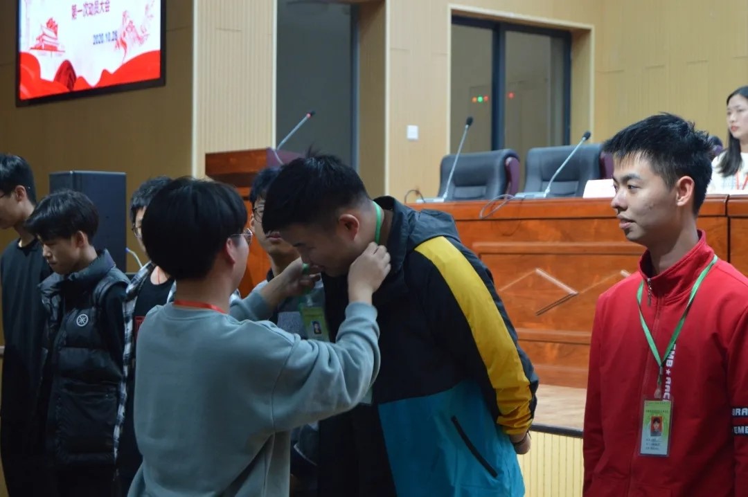 随后而来的第二项议程:授牌仪式。在这格外庄严隆重的时刻,每位干事都怀着激动的心情走上前、弯下腰接过主任手中的绿色干事牌。这抹绿代表着青春活力、代表着奋斗向上的拼搏精神、代表着在学生会工作中的责任与担当。新干事们在大家的掌声中正式加入到了光电制造学院团总支学生会这个大家庭中,成为了学生会的一份子。