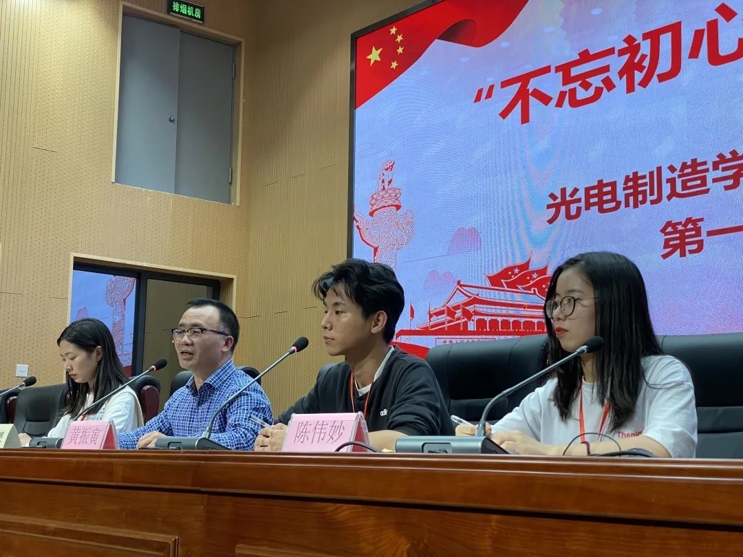 光电制造学院团总支学生会第一次动员大会于10月28日下午五点半在行政楼105召开。出席本次会议的有光电制造学院党总支书记张勰老师,18级主席团杨国学长、李汉学长和陶晨超学长,19级主席团应俐聪、黄振寅、陈伟妙、各中心主任以及全体学生会干事。本次会议由学生会主席黄振寅主持。