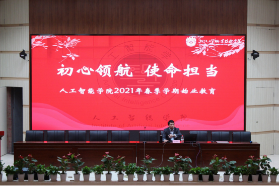 3月1日,人工智能学院于资讯楼报告厅召开“初心领航 使命担当”为主题的春季学期始业教育。人工智能学院党总支副书记徐登喜、组织员姜集苗分别担任主讲人,辅导员、班主任和全体19、20级同学参加会议。