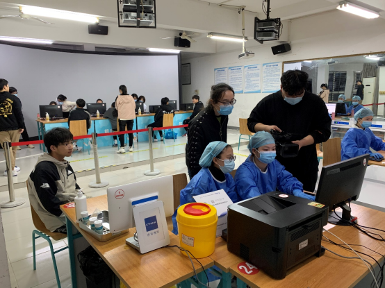 3月24日,蒲鞋市街道在浙江工贸学院府东路校区设置的临时疫苗接种点正式启动,这也是全区首家学校疫苗接种点。当天,设计与数字艺术学院学生为第一批新冠疫苗接种学生。总务处、保卫处、学生处和各分院通力合作,组织协调,保障学生有序地在接种处排队等候、信息登记、疫苗接种与静坐留观,积极配合街道接种工作。整个疫苗接种工作过程安全、规范、高效、平稳、井然有序。