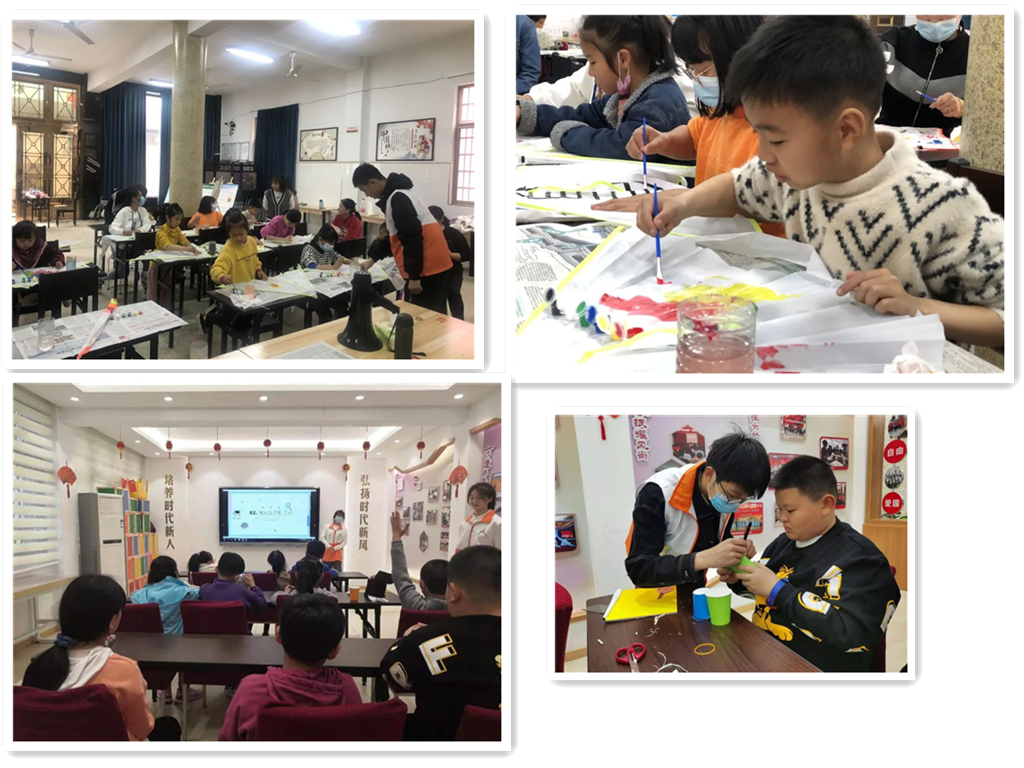春分过去不久,春天的气氛已经很是显著了,而今日的社区活动十分应景,山福镇,鸟语花香,社区提供了风筝的雏形供孩子与志愿者们进行创意绘做。五色斑斓的颜料涂上原本空白的风筝,将风筝染得绚丽多彩,犹如春日里绽开的朵朵鲜花。