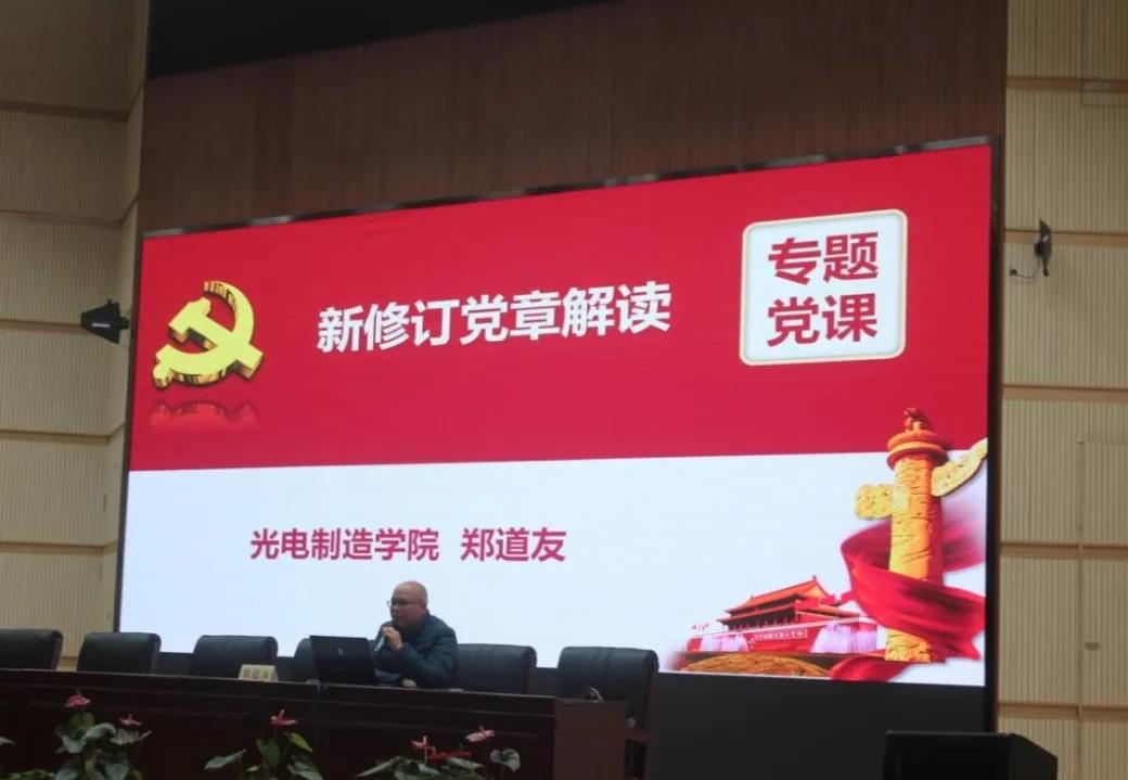 在2021年4月15日晚上18:00,光电制造学院在咨询楼报告厅开展了“庆建党百年华诞,做优秀学生干部”第三期团学干部培训。光电制造学院团总支学生会全体成员和团委学生会、校学生社团联合会、院学生党建服务中心、院宿管会部分学生干部以及学院各班班委。本期培训由光电制造学院院长郑道友主讲。