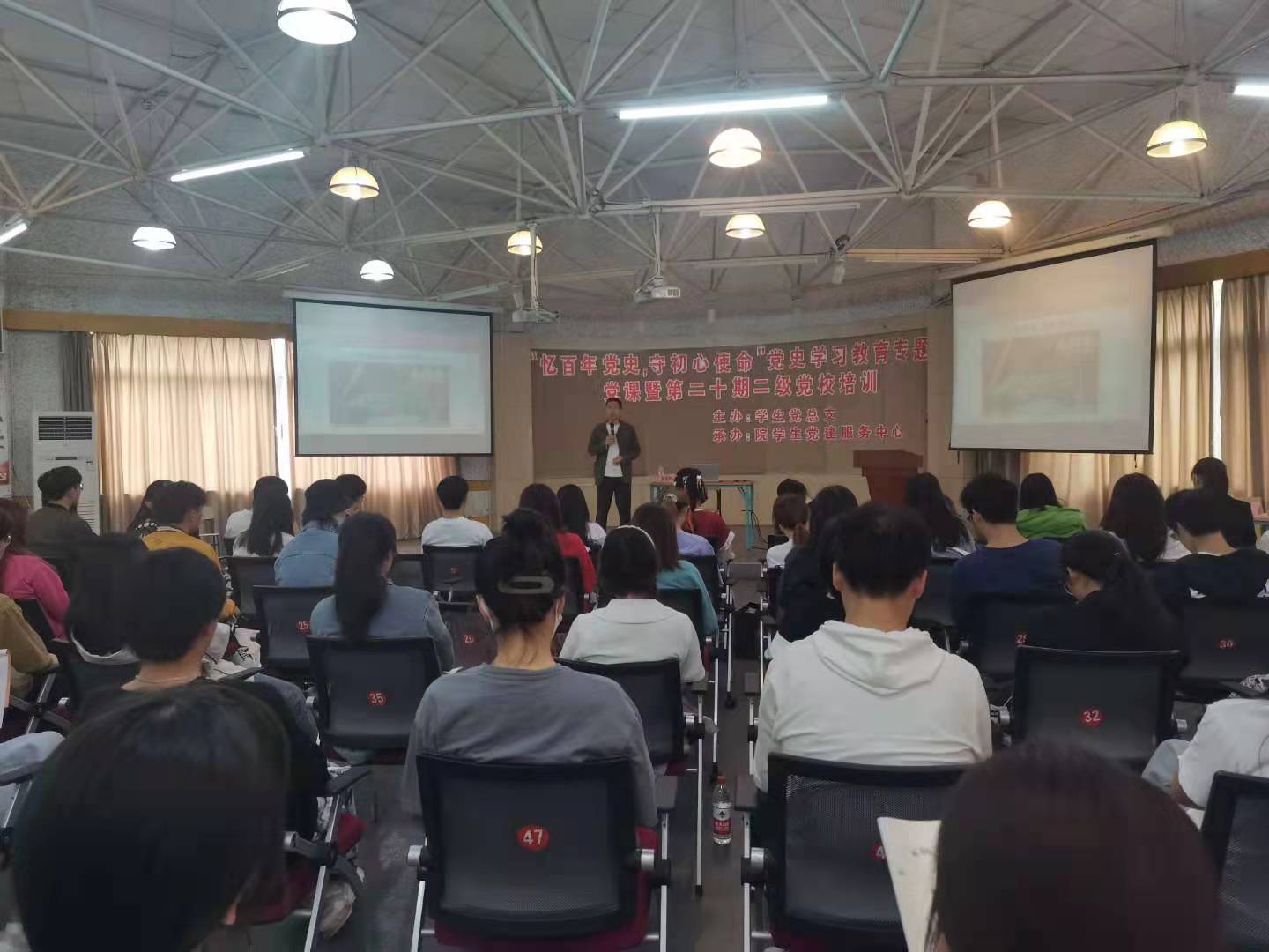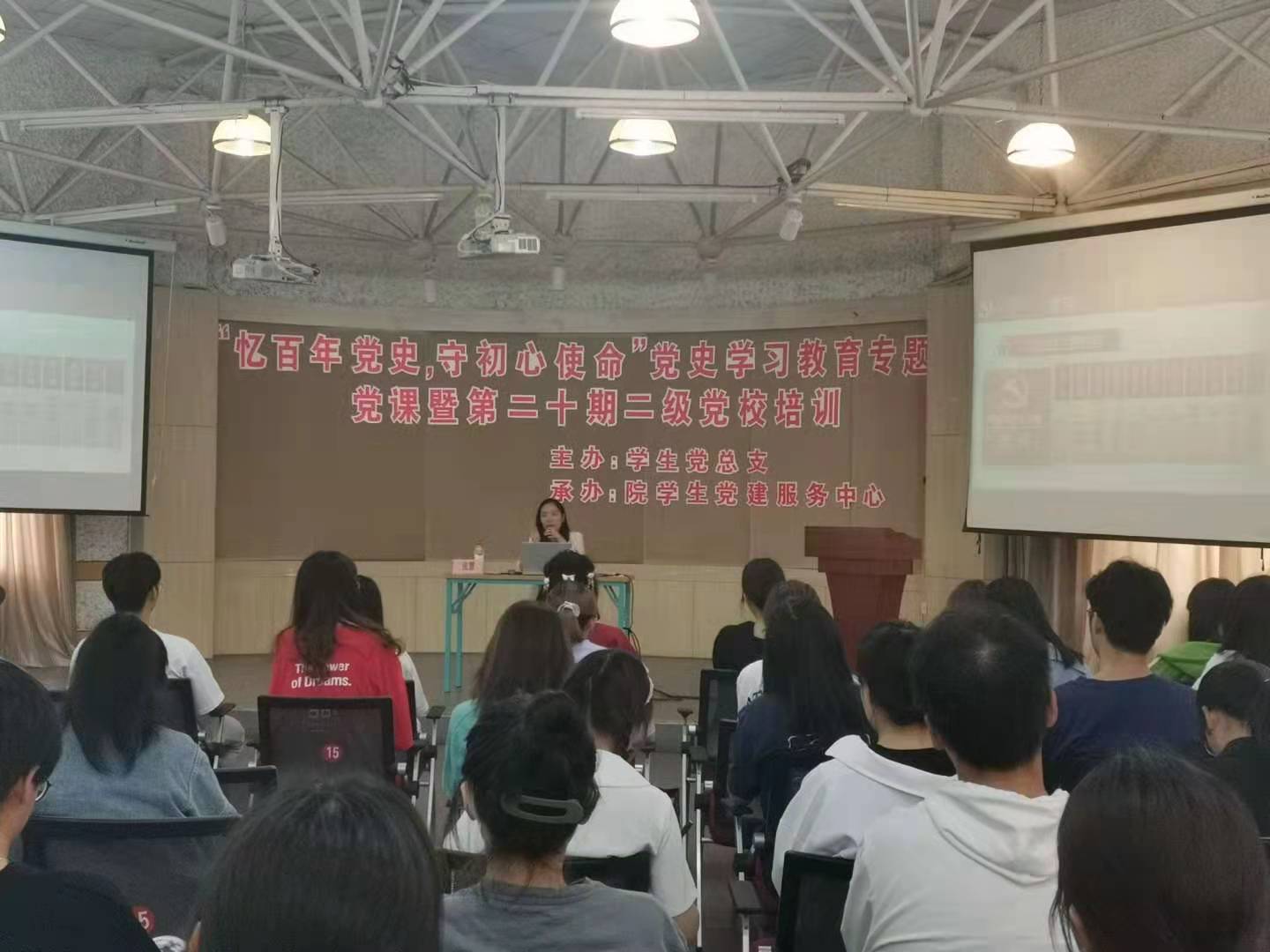 4月24日,学生党总支在府东路校区多功能厅和瓯江口校区A201教室开展了“忆百年党史,守初心使命”党史学习教育专题党课暨第二十期二级党校培训。此次培训由党委组织部俞通海老师,学生社团第一党支部书记张慧老师,学生社团第三党支部书记宋志超老师,学工部辅导员杨雁如老师主讲,参加培训人员为20级入党积极分子。