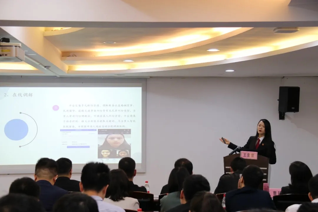 来自温州中院立案庭的王蒙蒙法官做了“ODR平台及诉前调案件要点简介”宣讲,王法官从ODR平台沿革、功能、操作及诉前调解案件注意事项和平台成果等全方位对平台进行了清晰、详细的讲解,强调了对案件及时相应的重要性,并结合案例生动地展示了ODR的强大能力和未来发展趋势。随后ODR技术支持工程师现场演示了ODR使用步骤和注意事项,并就系统使用答疑,现场气氛热烈,调解员们表现了极大的兴趣。