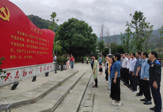 在党旗塑像前,党员代表潘晶晶同志带领全体党员重温入党誓词,再次感受作为一名党员所肩负的神圣职责和使命。入党誓词的十二句话,概括了党对党员的基本要求,也概括了党员对党组织和党的事业所应承担的政治责任。然后,全体党员怀着对革命先烈的崇敬和缅怀之情,瞻仰了红十三军革命烈士纪念碑,并向革命先烈敬献了花圈。