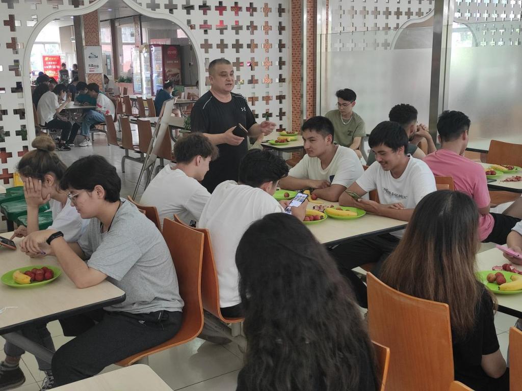 留校少数民族学生还在学子广场共同参与了“众心向党迎百年,浓情端午粽飘香”为主题的端午民俗活动。现场同学们了解了端午的来历和习俗,大家饶有兴致地和其他同学竞猜民俗趣味答题、分发咸鸭蛋、点雄黄酒、系彩绳。通过亲历民俗活动使少数民族学生感受到了传统民俗的魅力和中华传统文化的内涵,坚定了大家对中华文化的自信,加深了爱国主义情怀。