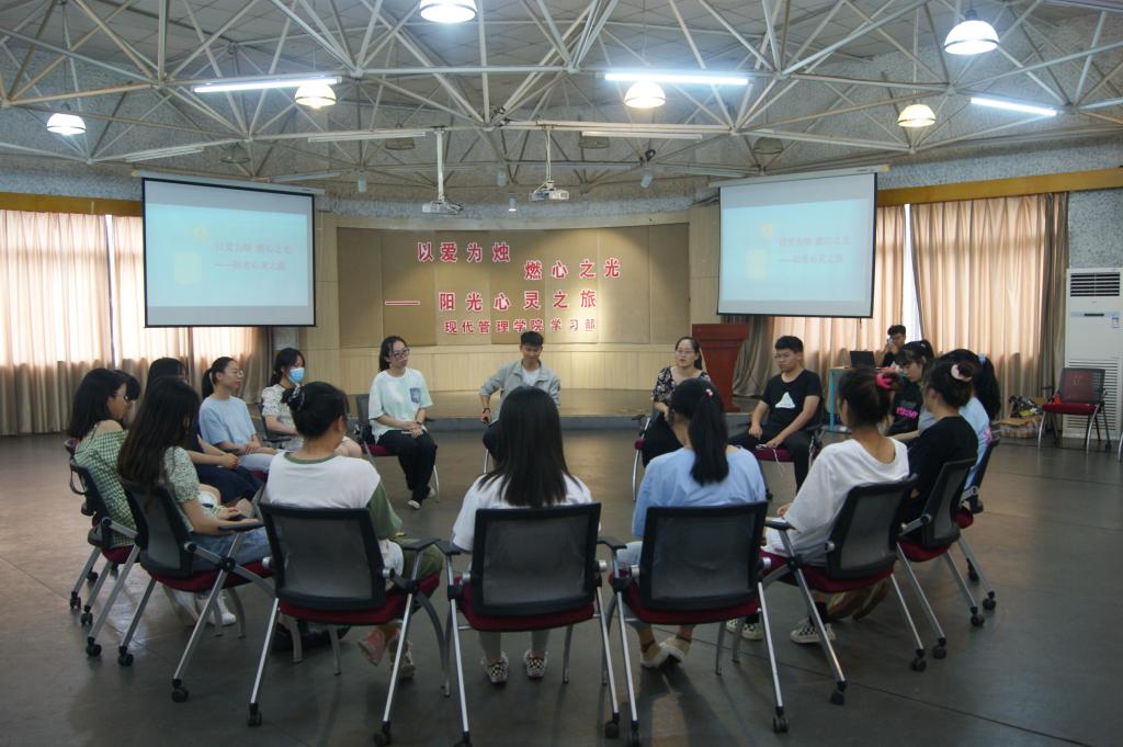 为了加强心理健康教育、提升学生心理素质,同时缓解期末考试压力,2021年6月16日下午,现代管理学院团总支学生会学习部在多功能厅举行“以爱为烛,燃心之光--阳光心灵之旅”为主题的心理活动。