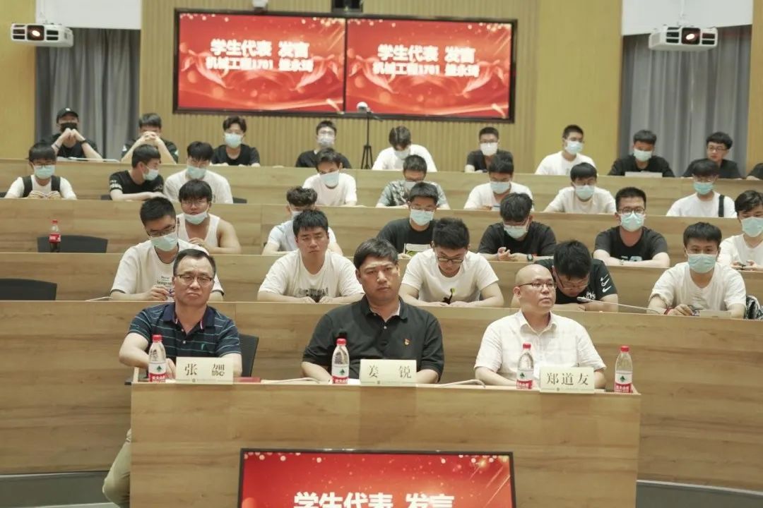 在2021年6月19日下午两点,“扬帆逐梦,韶华共鉴”——光电制造学院2021届本科生毕业典礼在国际报告厅举行,出席嘉宾有:温州大学机电工程学院副院长姜锐老师、温州大学机电工程学院机械制造系主任周晨老师、光电制造学院党总支书记张勰老师、光电制造学院院长郑道友老师、光电制造学院党总支副书记秦佳老师、光电制造学院副院长李晓星老师、毕业班班主任、辅导员老师及本科班全体毕业生。本次会议由光电制造学院党总支副书记秦佳老师主持。