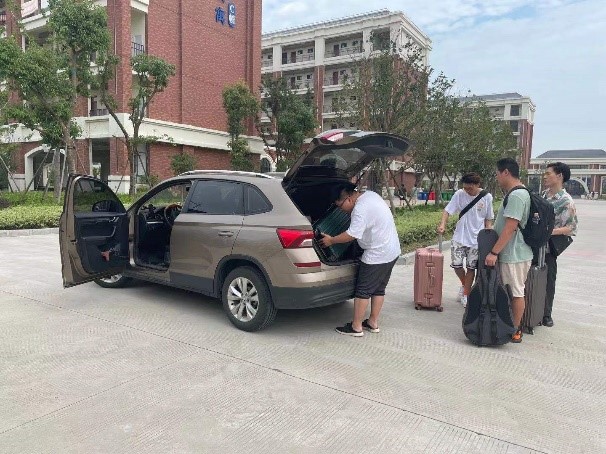 早上8点,光电党总支党员老师的11辆私家车已经在光电B幢楼下依次排开,他们迎来了第一批结束期末考试离校的学生“乘客”。老师们戴着党徽精神抖擞,提起学生厚重的行李放置车辆后备箱,用亲切的笑容把学生们迎上车。学生们一声声“谢谢”,是对老师的最好答谢。