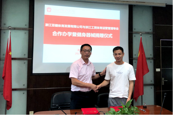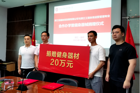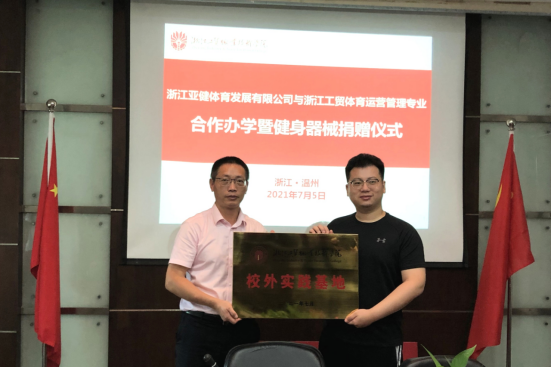 为推进产教融合、校企合作,践行学校“双高”建设,2021年7月5日,浙江亚健体育发展有限公司与浙江工贸体育运营与管理专业合作办学签约曁健身器材捐赠仪式在学校府东路校区一号会议室举行。