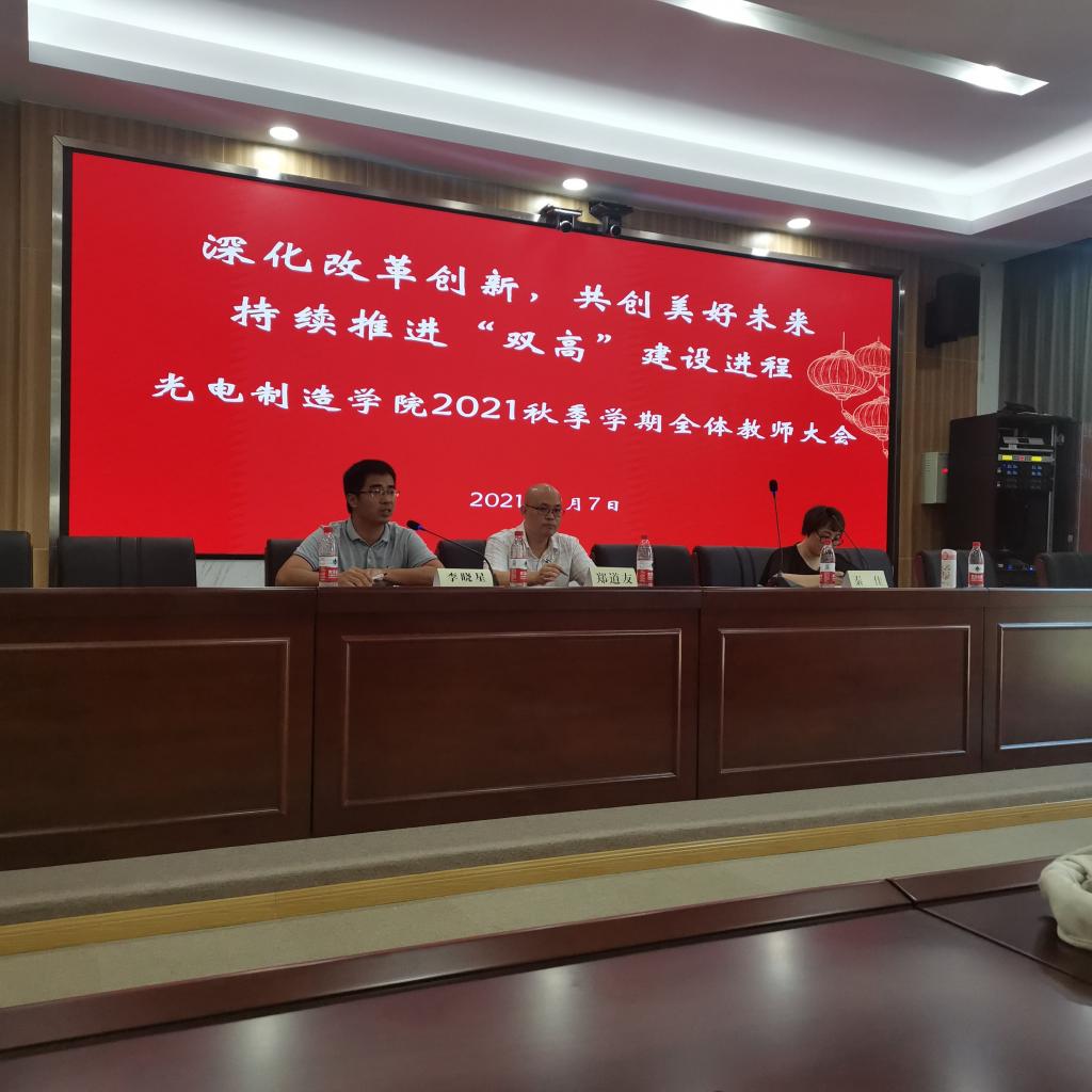 深化改革创新 共创美好未来 持续推进“双高”建设进程----光电制造学院2021秋季学期全体教师大会