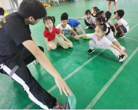 此次体育培训班面向学校教职工子女,共开设5个班级,学生年龄从3岁至15岁,每个班共授课24学时。授课团队以党员老师为主,授课教师既有老教师,也有新入职员工;有全国冠军,更有世界冠军;有体育专业学生,有校企合作单位员工,更有两个国家健将级运动员。近日,体育党支部筹备一个多月的职工子女体适能公益班终于成功上线。专业的教学,热情的服务,这是体育党支部的服务宗旨。第一期开班时,100多名孩子参加培训。在教师带领下,学生们参与热身运动、趣味运动和体能训练中。