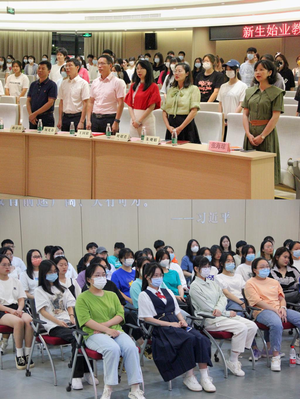 在激昂的国歌声中,始业教育大会拉开序幕。各会场同学们在教室屏幕上观看现场直播。现代管理学院院长王国银对大会致辞,提出把“学会学习,学会思考,学会生活”三个学会运用到生活当中。教师代表张海琼老师向同学们传递出奋斗、自信、自强的重要理念。随后,老生代表徐珂璐与新生代表柳一豪分别发言,告诉同学们大学期间要有砥砺前行、奋斗向前的积极心态。声艺部的朗诵《青春中国》将大会推向高潮。现代管理学院党总支书记项光春老师寄语同学们:“有崇德修身的志向,打潜心治学的基础,筑百炼成钢的意志,提高硬核和本领”,在热烈的掌声中,本次始业教育大会落下帷幕。