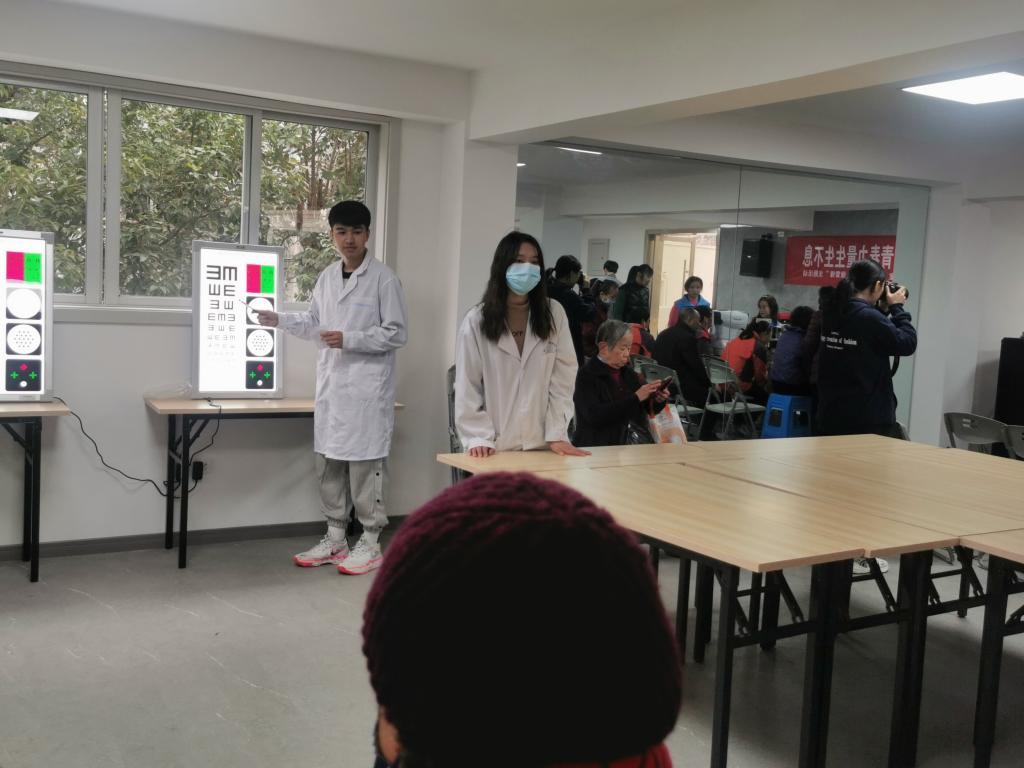 这群白衣天使来自于“红石榴’睛’彩名班主任工作室”的师生们,他们带来裂隙灯显微镜、电脑验光仪、 灯箱视力表等专业仪器,为老人们送上专业服务。“奶奶,您的白内障引发了青光眼,您需要早点就医,有可能需要安排手术呢……”工作室的教师郑奕奕耐心地为老人进行检测,对于有可能存在严重眼部疾病的老人,郑老师不忘多声叮嘱。
