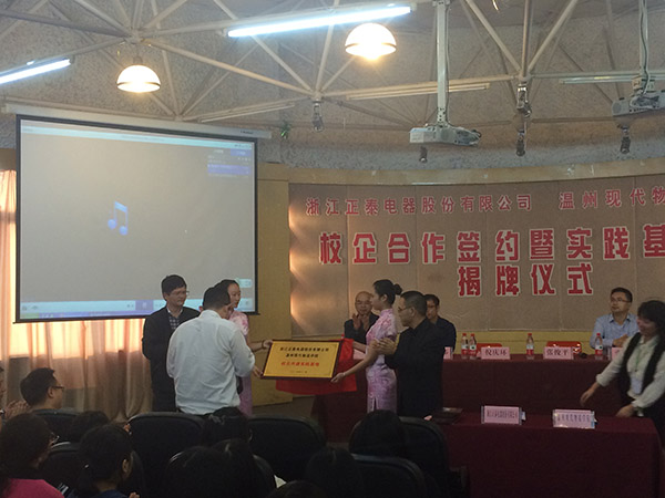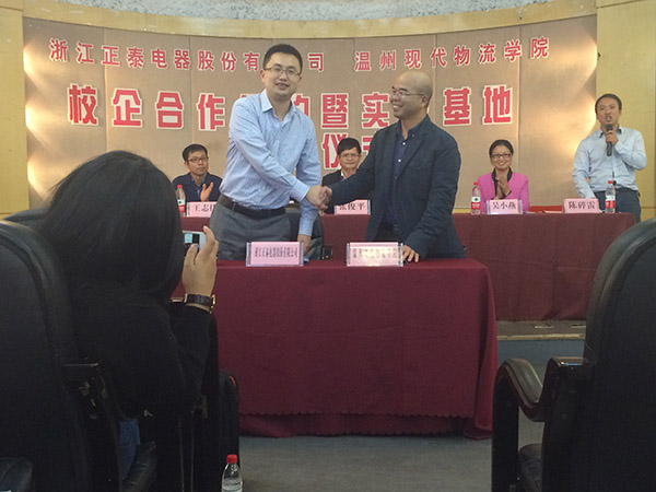 2015年11月9日下午,浙江正泰电器股份有限公司与温州现代物流学院校企合作签约暨实践基地揭牌仪式在浙江工贸职业技术学院1号楼多功能厅举行。出席这次会议的企业嘉宾有浙江正泰电器股份有限公司中国区销售运营管理总经理倪庆环、客服物流部副总经理张万利、人力资源部培训发展副经理王志伟、客服物流部订单与计划经理马云飞和客服物流部华东区域经理覃剑锋。出席会议的学院代表有浙江工贸职业技术学院副院长张俊平,温州现代物流学院院长汪焰和温州现代物流学院副院长陈碎雷,还有温州现代物流学院师生。会议由温州现代物流学院副院长陈碎雷主持召开。