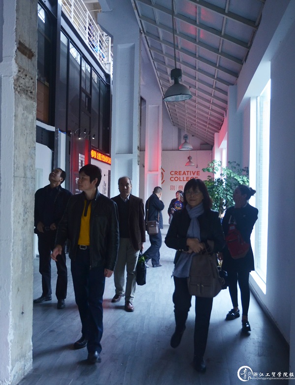 在相关部门工作人员的陪同下,他们兴致勃勃地参观了浙江创意园、温州市知识产权服务园、省级服务外包示范园,实地查看了三大园区的运行情况,耐心聆听工作人员的讲解,认真观看师生设计的作品,细致地翻阅资料,对感兴趣的问题及时与工作人员沟通,较为全面地了解了我院建设三大园区,推进创新创业教育的思路和做法。