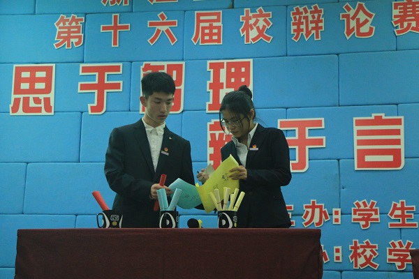 11月4日,以“思于智理 辩与言论”为主题的第十六届辩论赛开幕式在阶梯教室举办。人文系周晓玲老师、高职研究所叶锋老师、发展规划部陈珊老师担任现场评委。