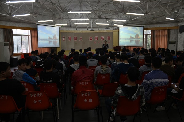 电子系于10月29日在校多功能厅举行“立德树人,体教结合”为主题的爱国主义教育讲座。讲座由电子系党总支副书记吴学亮老师主持,体育发展中心范杉老师和李春峰老师做汇报,辅导员、学生干部及2015级学生参加。