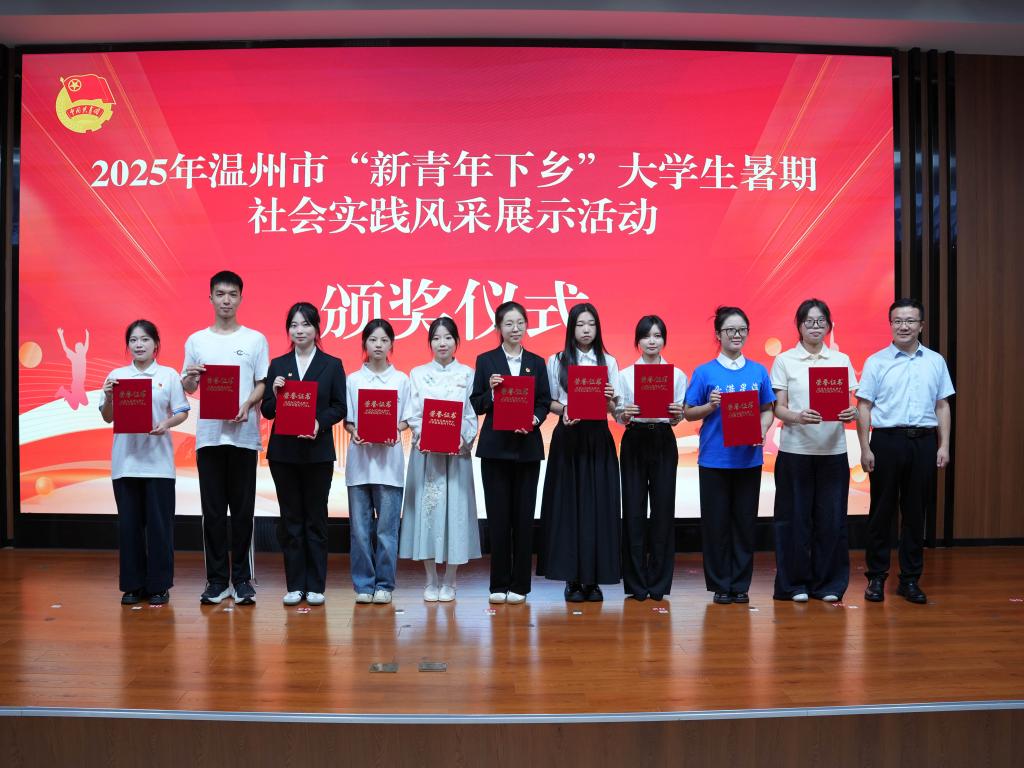 2025 年 9 月 28 日,温州市 “新青年下乡” 大学生暑期社会实践风采展示活动在浙江安防职业技术学院举行。浙江工贸职业技术学院设计与数字艺术学院 “西部明眸” 眼视光志愿队,凭借扎实亮眼的实践成果与现场生动精彩的展示,成功斩获 “温州市十佳团队” 称号,为学校暑期社会实践工作再添一枚沉甸甸的荣誉。