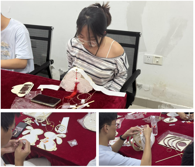 活动中,同学们各自协作相互配合,学生干部也游走于制作区,帮助同学们组装框架、调整造型、安装灯饰,确保每个人都能顺利制作出满意的灯笼。现场气氛轻松融洽,一盏盏各具特色的创意灯笼在同学们手中逐渐成型,展现了丰富的想象力。