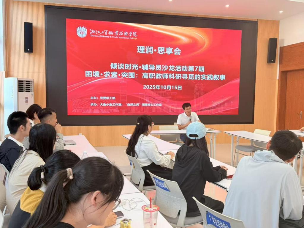 为进一步提升辅导员队伍的科研能力与思政工作水平,凝聚育人合力,10月15日下午,由学工部主办的“理润·思享会|倾谈时光·辅导员沙龙”第7期活动在瓯江口校区资讯楼113举行。全校各二级学院辅导员参与本次活动,围绕“科研实践分享”展开深入学习与交流。