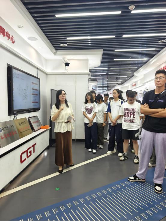 在浙江长城总经理陈秀的热情接待下,同学们首先参观了浙江长城智能展示中心。通过详尽的讲解,大家系统了解了中国长城科技集团的发展历程、核心技术突破及在网信产业中取得的辉煌成就。从自主安全的计算硬件到完整的网信产业生态,展厅内陈列的一系列产品深深吸引了同学们的目光,让大家对国产计算机的技术实力与发展成就有了直观而深刻的认识。