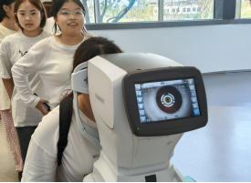 讲座结束后,医生团队为学生进行眼健康检查。学生们以“患者”身份参与其中,在体验专业检查流程的同时,也熟悉了专业设备操作与岗位流程,实现了认知学习与实践感知的双向提升。
