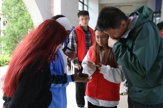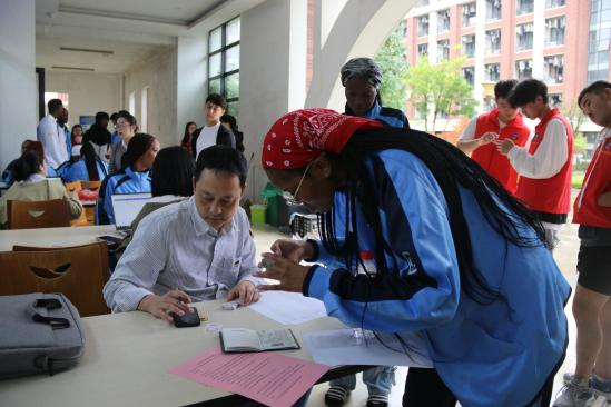 在新生报到处,绿啄志愿者分工明确、秩序井然,有序协助南非新生完成入住登记。从耐心核对姓名、学号、宿舍房间号等关键信息,确保流程准确无误;到针对语言障碍,提前准备中英双语指引纸张,同步启用手机翻译工具辅助沟通。全程高效顺畅,让新生在轻松氛围中快速完成报到手续。