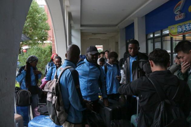 载有南非新生的车辆抵达后,绿啄志愿者立即上前迎接。他们分工明确、配合默契:有的主动接过行李与背包,清点数量后搬运至指定地点;有的用简单英文与新生交流,辅以手势化解语言隔阂。一句句“Welcome”、一次次主动帮扶,让初到校园的南非新生瞬间感受到光电制造学院的热情与温度。