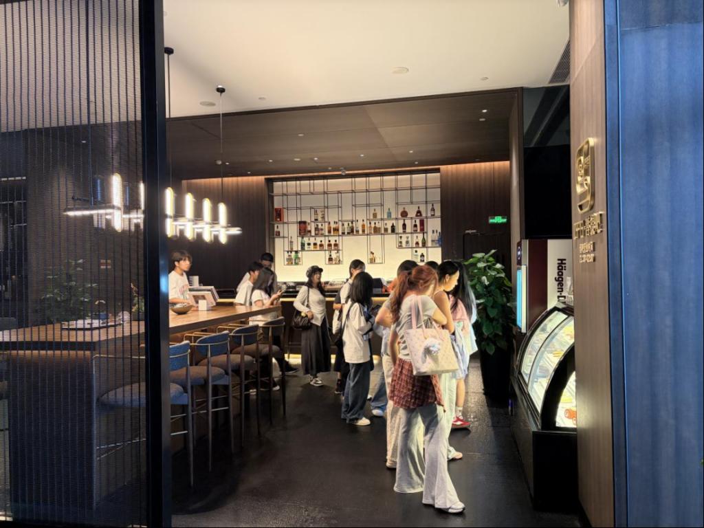 实践活动以“实景体验+深度分享”的形式展开,内容丰富且层次分明。活动伊始,新生们分为三组,在酒店工作人员的引导下开启沉浸式参观之旅。从对望市政府的城芯大堂,到配备1200平方米无柱宴会厅的会议区域,再到地中海咖啡厅、四季轩中餐厅等特色餐饮空间,以及涵盖恒温泳池与健身房的康体区域,同学们实地观察了酒店各功能板块的运营场景,直观感受了高端酒店的服务标准与空间管理逻辑。
