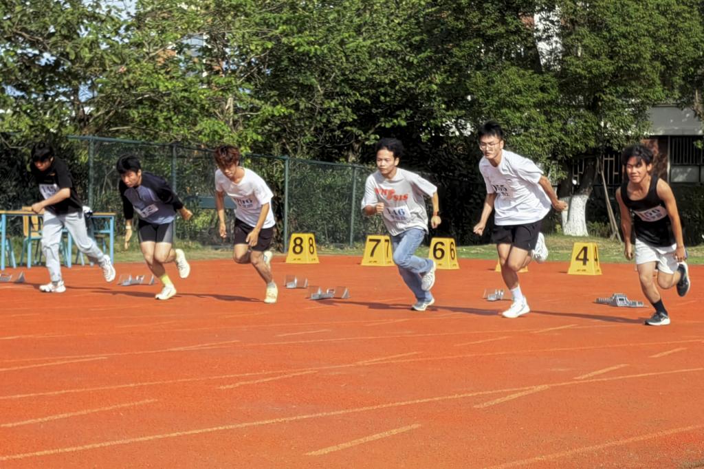 田赛区域同样亮点纷呈,竞技氛围浓厚。跳高、跳远项目中,选手们精准把控助跑节奏,踏板处蓄力发力后腾空跃起,优美弧线划过赛场时,鼓声骤然加急、拉拉队欢呼声响彻云霄;铅球、实心球项目里,参赛学子沉身、转体、挥臂动作连贯规范,器械在空中划出精准抛物线,落地瞬间鼓点与掌声同步响起,为力量的绽放喝彩。赛场各处,工作人员与服务同学的身影忙碌而有序:检录处的工作人员仔细核对运动员信息、分发号码布,确保参赛流程零差错;跑道旁的工作人员及时清理场地、指引路线,保障赛事安全推进;身着统一服饰的同学们穿梭在赛场内外,为运动员递水补给、搀扶体力不支的选手,在观众席周边维护秩序、传递赛事资讯,用耐心与热忱填补每一处服务细节。期间,裁判员团队秉持“严肃、认真、公正、准确”原则,严格把控赛事流程与判罚标准;后勤、保卫工作组从物资供给、现场安全维护到应急处置,全方位为赛事保驾护航。