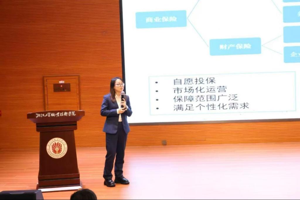 为帮助新生零距离感受行业前沿,中国太保产险温州分公司线上平台部总经理助理朱维维女士为同学们带来了精彩的行业分享。她深入介绍了公司作为世界500强企业的发展实力与文化理念,清晰地勾勒出金融学子的职业成长路径与发展蓝图,激发了同学们对未来的无限憧憬。