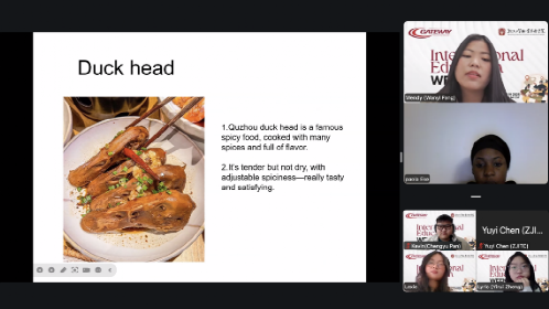 国际商贸学院商务英语专业曾熙妮与现代管理学院旅游管理专业方婉怡,则分别介绍了温州与衢州的地方饮食文化。她们以生动讲述与图文展示,向各国学生展现了中国丰富多彩的饮食传统,激发现场热烈反响,不少国际学生表达了未来亲身体验中国文化的意愿。