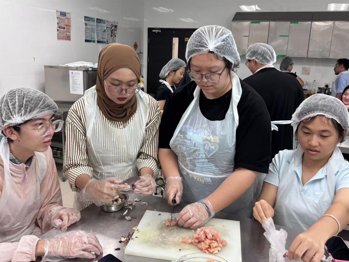 吉隆坡的街头巷尾,藏着马来西亚的文化密码。在马来文化与语言体验工作坊中,同学们跟着当地老师学习马来语常用表达,亲手体验传统美食—椰浆饭和咖喱鸡的制作,感受马来文化的细腻与温暖。