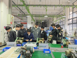 参观学习中,同学们有序深入三大核心车间沉浸式学习:在注塑眼镜架加工车间,围观塑料原料经高温熔融、高压注射、冷却定型,快速蜕变为镜架雏形;走进板材眼镜架加工车间,近距离观察切割、打磨、抛光、雕刻全流程,见证厚重板材雕琢成纹理细腻的镜架坯件;踏入金属眼镜架加工车间,学习拉丝、焊接、电镀等精密工艺。近距离观摩了眼镜架的精密加工、组装调试、质量检测等核心工序。企业技术人员的细致讲解与演示,使抽象的理论知识变得生动具体。同学们积极提问,与企业技术人员互动频繁,展现了浓厚的求知欲。