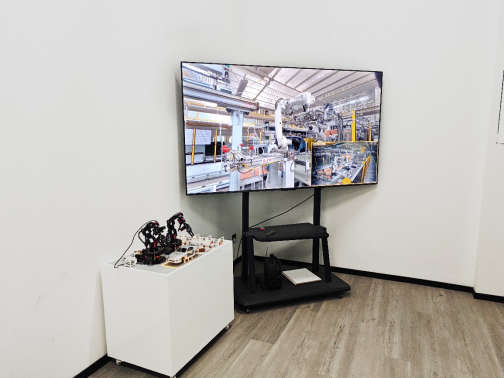 温州帝杰曼科技有限公司展区重点展出了数字孪生智慧机械臂仿真实训平台、数字孪生智慧工厂仿真平台、脑电信号采集与睡眠分析数字孪生养老平台、东瓯王庙文物数字化复刻与展示数字孪生平台等核心作品,相较于校内展示版本,这些作品均结合企业实际业务场景完成了优化升级。