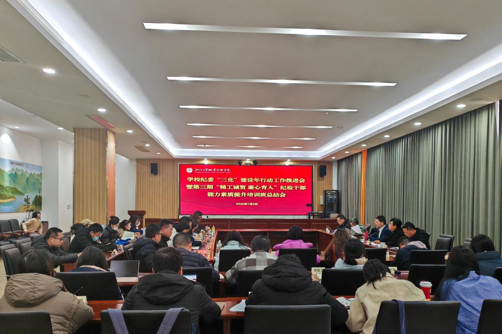 为深入学习习近平总书记关于党的自我革命重要论述精神,切实提升学校纪检干部政治素养、业务能力和履职水平,学校纪委于2026年1月5日举办“三化”建设年行动工作推进会暨第三期“精工诚贸 廉心育人”纪检干部能力素质提升培训班总结会。学校纪委委员、各基层党组织纪检委员及专职纪检干部参加会议。
