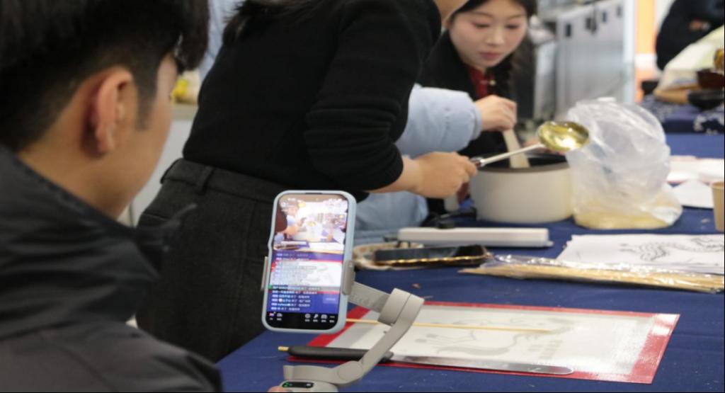 糖画制作区堪称全场“人气焦点”,学子将传统糖画技艺与现代旅游体验结合,现场熬糖、绘图案。龙、凤、兔子及温州地标建筑造型的糖画,冷却后裹上竹签递予参观者,甜香与欢呼声交织,不少同学排队定制专属糖画,尽显传统技艺与旅游体验结合的独特魅力。
