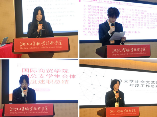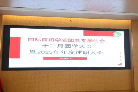 为进一步凝聚团学力量,深化部门协同协作,全面复盘2025年度工作成效,精准规划未来团学方向,12月23日晚,国际商贸学院在1号楼阶梯教室隆重召开团总支学生会十二月团学大会暨2025年度述职大会。大会由学院团总支副书记楼依娜主持,团总支书记周小倩老师、学生会主席张博绚、副主席刘晶晶及团总支学生会全体成员共同参与。