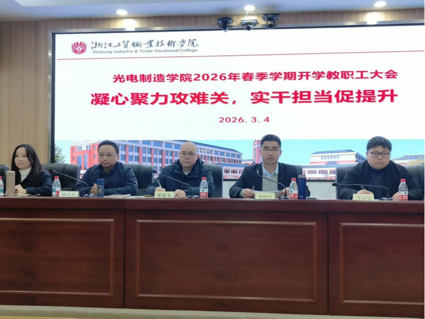 3月4日,光电制造学院在行政楼104会议室召开2026年春季学期全体教职工大会,会议以“凝心聚力攻难关,实干担当促提升”为主题,由书记李晓星主持,全体教职工参加会议。