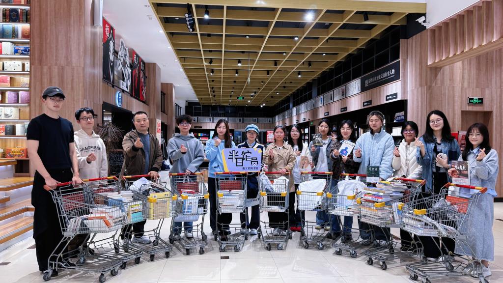 来自不同院系的15位师生读者化身“半日馆员”,带着对选书工作的蓬勃热情,成功解锁全新身份。大家告别日常读者视角,完成从课堂学习者到书店临时馆员的华丽转身,走进图书采购的幕后现场。在专业馆员的细致指导与全程陪伴下,师生们怀揣着对阅读的热爱,用真心为全校师生甄选优质好书,让每一本读物都承载知识、传递温暖,为校园读书节注入满满活力。